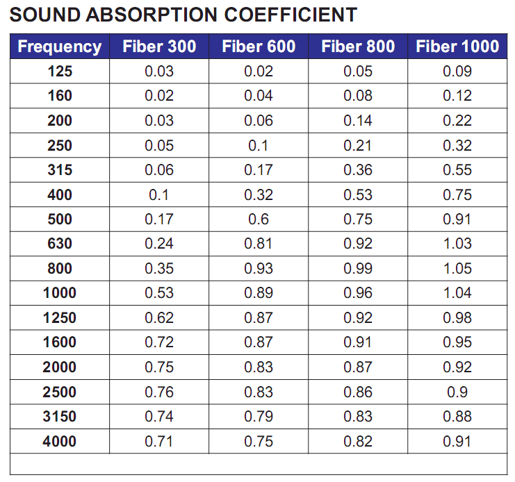 Acourete Fiber memiliki kekuatan serap suara yang sama atau lebih baik dibandingkan bahan peredam lain yang tebalnya 10 kali lebih tebal.